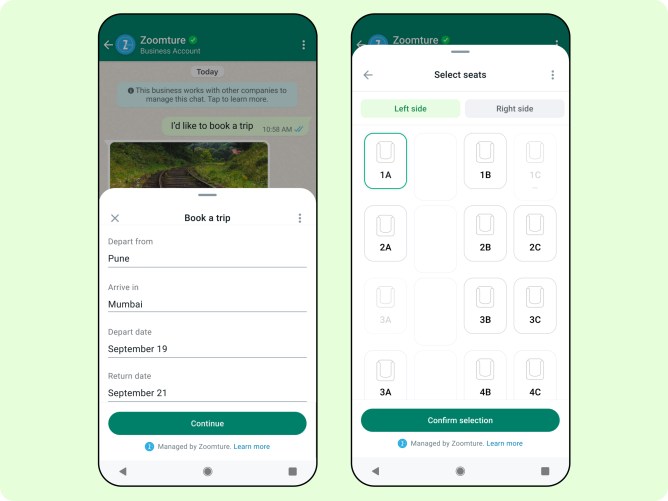 We’re launching Flows so businesses can offer more experiences like quickly choosing your train seat, ordering a meal or booking an appointment – all without leaving your chat. With Flows, businesses will be able to provide rich menus and customizable forms that support different needs. We’ll make Flows available to businesses around the world using the WhatsApp Business Platform in the coming weeks.